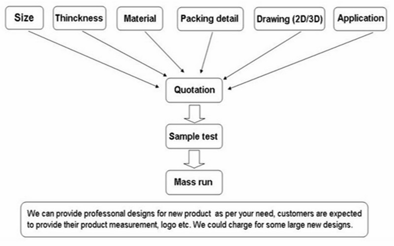 metal products: order confirmed--purchase material--cutting--welding--powder coating--installation--quality control--packing plastic products: order confirmed--purchase material--cutting--silk-screen printing--vacumm forming--installation--quality control--packing